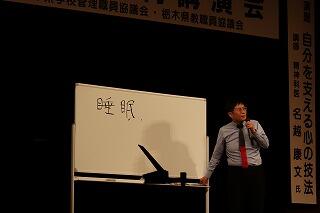 11月30日(土)、教育会館大ホールにて、精神科医であり、テレビやラジオでコメンテーター、映画評論、漫画分析など様々な分野で活躍中の名越康文氏を講師に迎え、栃管協・栃教協共催の教育講演会を開催しました。栃管協からは、会員及び市町管協会長、役員等を含め約160名の皆様に御参加いただきました。