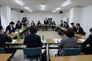 挨拶する内村会長 調査部の話合い 広報部の話合い