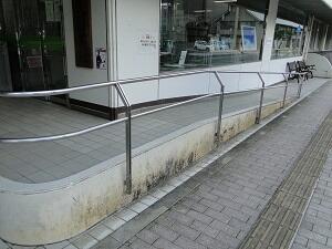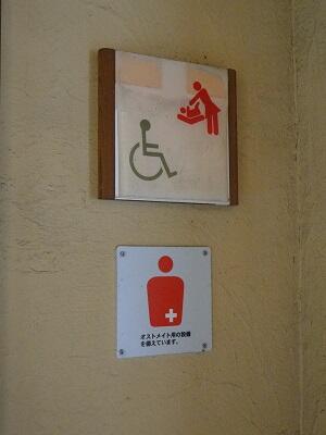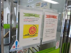 図書館の入り口には、「館内の車椅子のご利用を希望される方は、カウンターへお申し出ください。」と