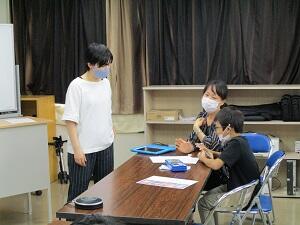 ペアになって練習。調べたことをもとに、交代しながらセリフの練習をしました。