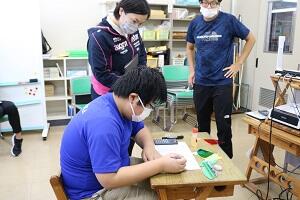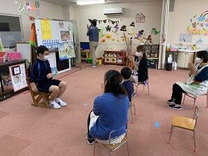 高学年は、そのままホールで少しアイスブレイク。いくつかゲームをしていくうちに打ち解けてきました。その後、教室でソーシャルスキルの学習を行いました。
