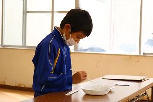 新型コロナウイルス感染症が広まってからは、給食の時間はいつも静かにいただいています。
