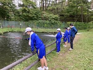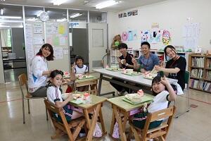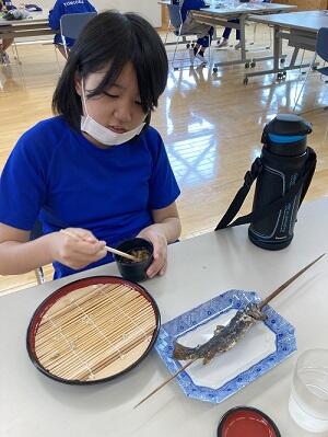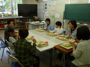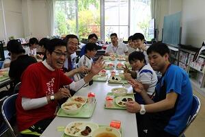 水泳記録会の後は、一緒に給食をいただいたり交流会を開いたりして、親睦を深めていました。