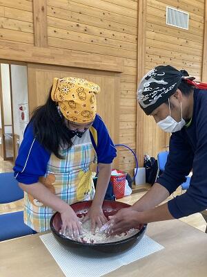 バンブーダンスにも挑戦してみました。この日はまだ始めたばかりなので、足の動かし方を中心に