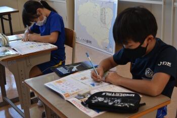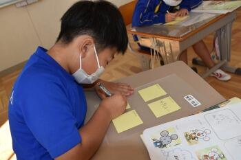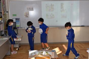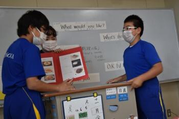 普段の英語は、決まった言い方や単語を練習しますが、今回は自分で必要だと思う言葉を調べて、自分で取捨選択した言葉を伝え合いました。調べるのは大変でしたが、頑張って伝えられたことに子ども達は満足気でした。今回の学習を、次回はお客役の6年生と勉強するので楽しみです。