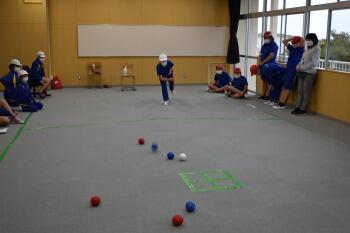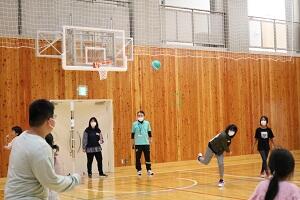 4校時目は、全校生でドッチビー。上学年と下学年に分かれて、雪合戦形式や王様ドッチなどのドッチビーで夢中になって楽しみました。