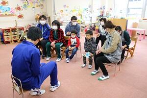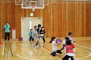 9月に引き続き、今月も富岡町さくらスポーツの林さんをお招きし、幼稚園のお友達が楽しく