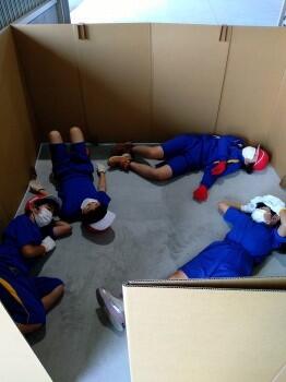 先日できなかった着衣泳を行いました。先日講義で聞いた通り、しっかり浮くことを練習しました。