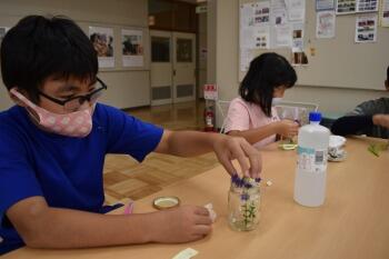 5年生は、花にはおしべやめしべなどがあり、花粉がめしべの先に付くとめしべのもとが実になり、