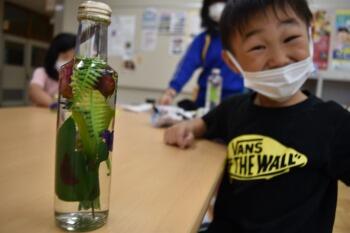 ヘチマを使った実験によって、受粉の有無と実のでき方について学んだ5年生が、