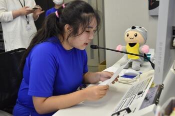 とみっぴーに見守られながら、ゆっくり丁寧に原稿を読みました。「反射材」など、ちょっと読みにくい言葉もありましたが、落ち着いて上手に読むことができました。21日にから放送になると思いますので、ぜひお聞きください。