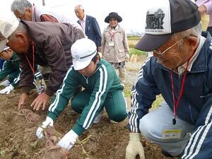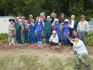 これは、郡山市にあった富田仮設住宅近くの畑で行ったサツマイモ掘りの様子です。