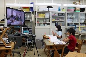 約1か月間、2階の多目的ホールや音楽室などを利用して授業をしてきました。