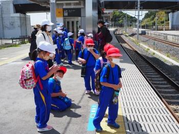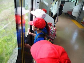 下校のバスの出発前に、全校生でお礼の気持ちを述べました。