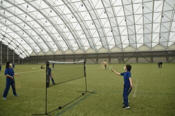 体験の前に、運営をするさくらスポーツの方から、館内の説明をしていただきました。楽しそうなものばかりで、「早く遊びたい!」とワクワクしながら聞いていた子ども達。