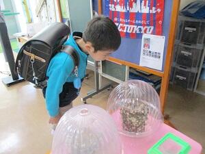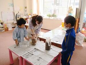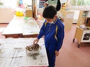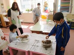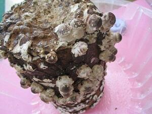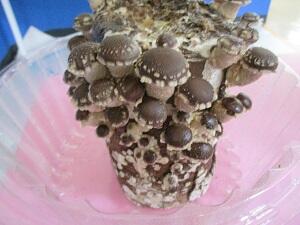 先日ご紹介した、2年生が幼稚園のお友達と一緒に始めたしいたけ栽培の続報です。