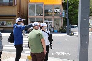 三春町交流館「まほら」でバスを降りた後、統一感のある町並みの様子を見学しました。
