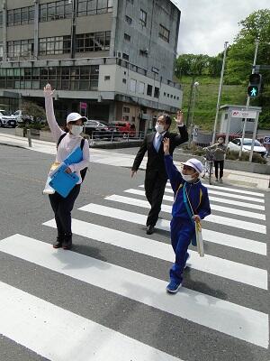校長先生も一緒です。横断歩道の渡り方が大変上手にできていますね。