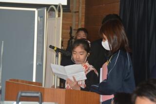 低学年は今回発表がないので、一生懸命お話を聞き、感想