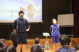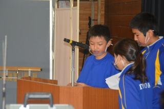 それぞれ、緊張しながらも中学生の立派な様子をお手本にして、頑張って発表していました。これからの様々な学習に活かしてほしいと思います。