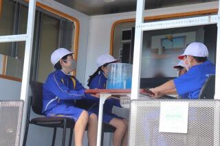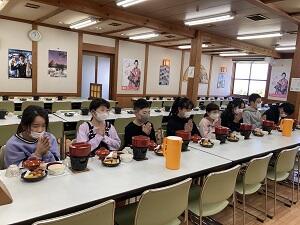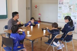 南校舎1階の各教室を広々と使い、他の家族との距離を取りながら家族ごとにおいしくいただきました。換気をしたため寒く感じた方もいらっしゃると思いますが、あたたかくておいしいラーメンに、心も体も温まりました。