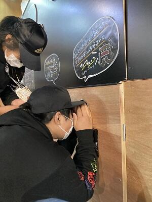 もう一人は、仕切りでスクリーンが見えないので、「〇〇をください」という英語を頼りに、相手に実物を手渡しします。