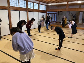 途中の隊形移動でお客様の周りに移動して踊りました。最後のポーズも決まり、たくさんの拍手をいただきました。