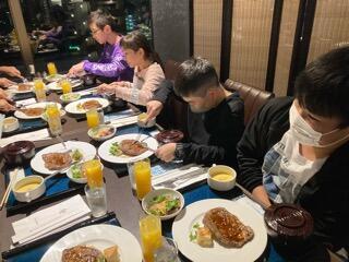 食べた後、贈呈式がありました。浜鶏ラーメンの藤田様からご挨拶をいただき、みんなで記念撮影をしました。