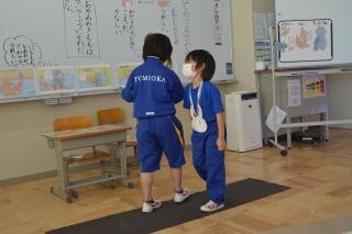 また、持久走大会に向けて学年ごとに取り組んできた「がんばりカード」の