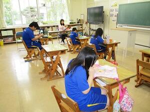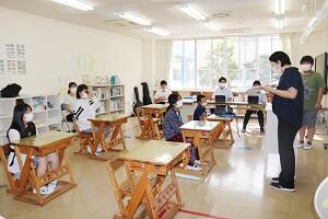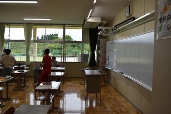 全校児童で授業を行っていますが、児童数が少ないため、間隔を十分にとることができます。