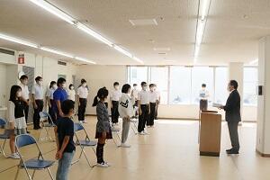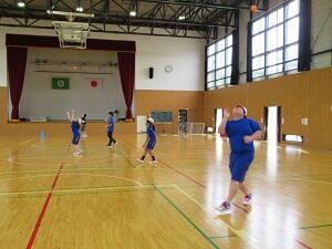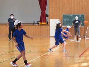 この日は雨だったために校庭が使えなかったので、体育館で全ての扉や窓を開けて行いました。