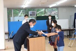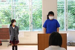 始業式の後、1学期の読書目標冊数を達成した2名に対して表彰を行いました。