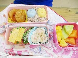 「おかずを詰めることを手伝いました。かわいいおかずが入っていてとても嬉しいです。