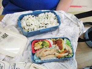 今日は、学年の実態に応じておうちの人と一緒にお弁当を作る「チャレンジ弁当の日」でした。