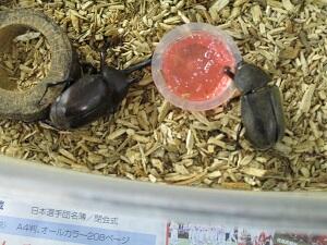 2年生が飼育しているカブトムシも、距離をとって黙食をしているようですね。