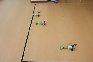 一通り命令と動き方をつかんだ後は、おもちゃの自動車を5m先に停車させることに