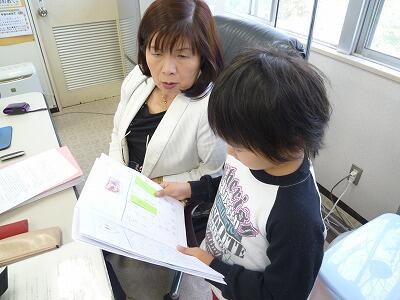 1年生も、お勉強に励んでいます。国語の時間は、「ゆうやけ」というお話を読んで、「だれがでてきたのかな?」「いちばんすきなところどこかな?」 先生とみんなで、話し合いながら楽しく勉強を進めています。