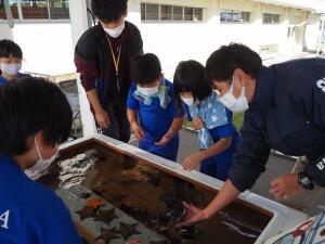 富岡は、海の近くにあるものの、あまり海の生物に触れる機会がありません。今日は、実際に生き物に触れることができた貴重な体験となりました。また、アクアマリンの職員の方による、はく製の観察・説明会も行いました。