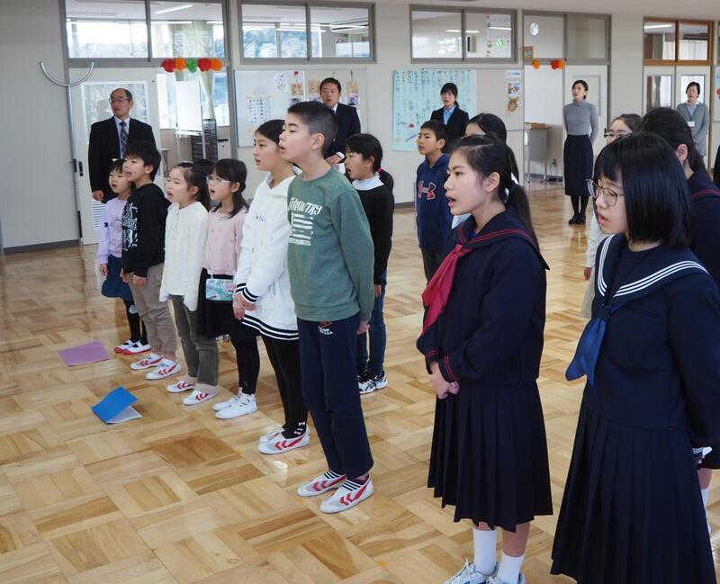入学式は富岡校と三春校の小学校・中学校合同で行い、