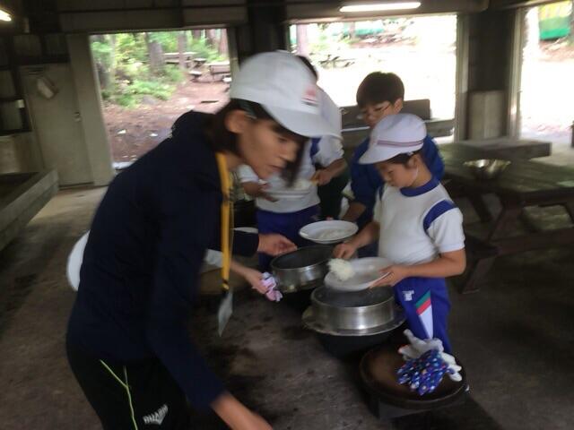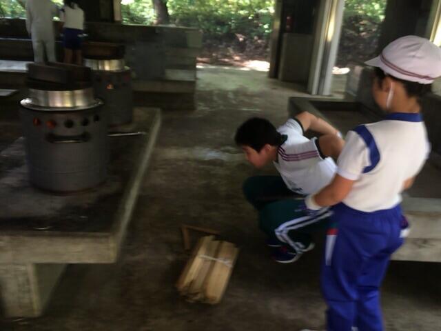 今回の最後の活動は野外炊飯です。これから昼ごはんのカレーライスを作ります。