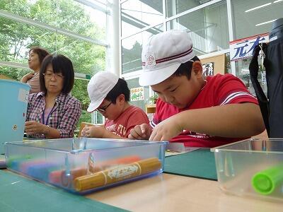 プラスチックを使ったキーホルダーや、紙トンボの工作体験も、真剣に取り組んでいました。