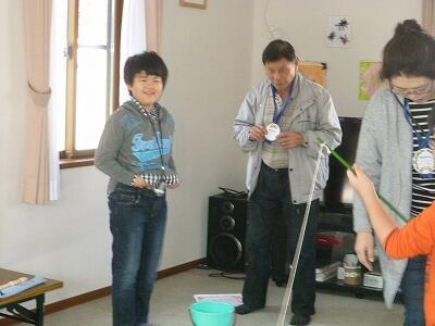次に、昔遊びの「宝引き」を老人クラブの方々に教えていただきながら遊びました。この「宝引き」は新潟県の昔遊びだそうです。