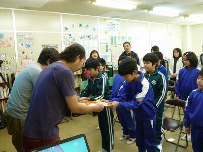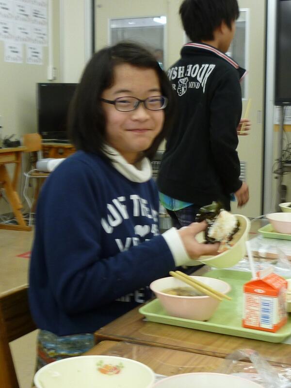 一緒に給食を食べました。