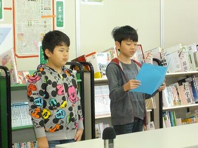 その後、児童代表の「1学期をふり返って」の作文発表がありました。二人の代表は、大きな声ではっきりと話し、自分の頑張ったことや夏休みの目標などを発表することができました。