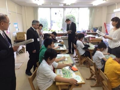 2年生の国語、4年生の算数、5年生の算数、6年生の総合を見学され、
