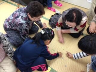 今日は、おじいちゃん、おばあちゃんに昔の遊びを教えていただく計画です。