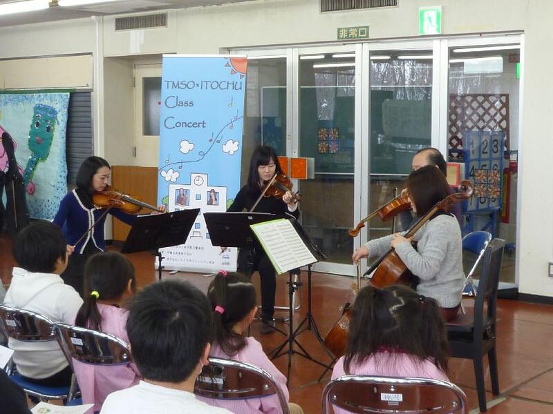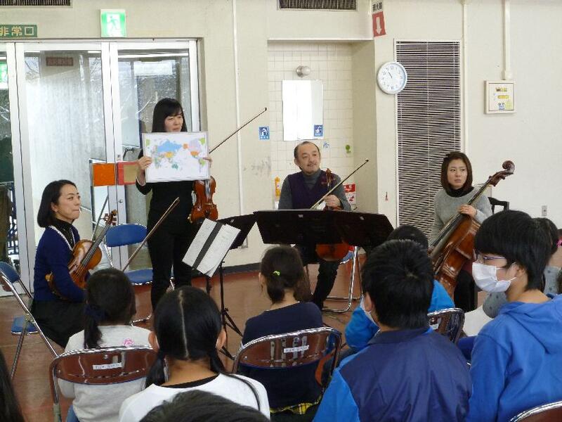 東京都交響楽団主催,伊藤忠商事協賛,いわき市民コミュニティー放送協力により,コンサートが行われました。東京都交響楽団のメンバーによるヴァイオリン・ヴィオラ・チェロの弦楽四重奏です。モーツアルトやチャイコフスなどの音楽家の話やヴァイオリン体験など,本物にふれ,美しい演奏を聴き,感動でいっぱいになりました。