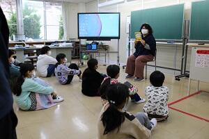 今回の全校集会は、国語部の企画です。今回子どもたちに紹介した本は、