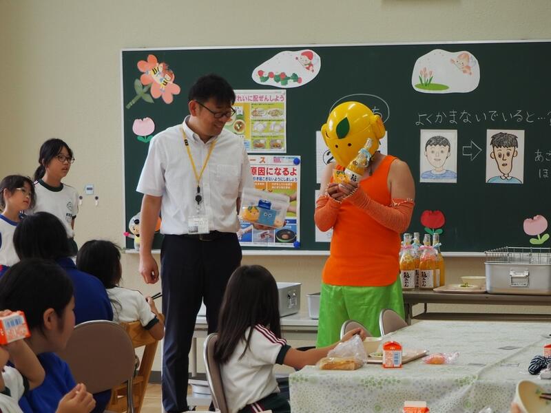 三春校を訪問してくれた愛媛県のみかんジャーが富岡校にもきてくれました。