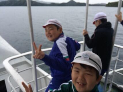 船の先端はスリルがあって、子ども達もどきどきしながら景色を見ていました。また、乗船中は先生方が作った「猪苗代湖クイズ」に挑戦。楽しいひとときを過ごすことができました。